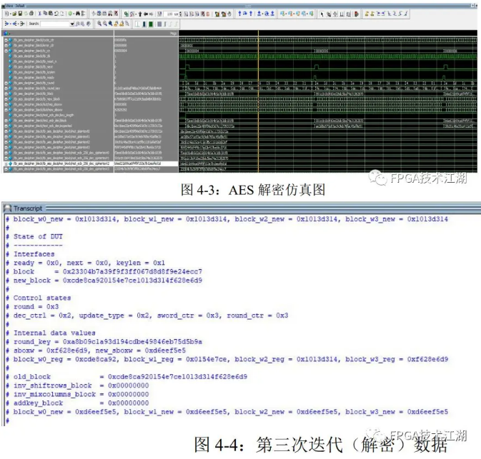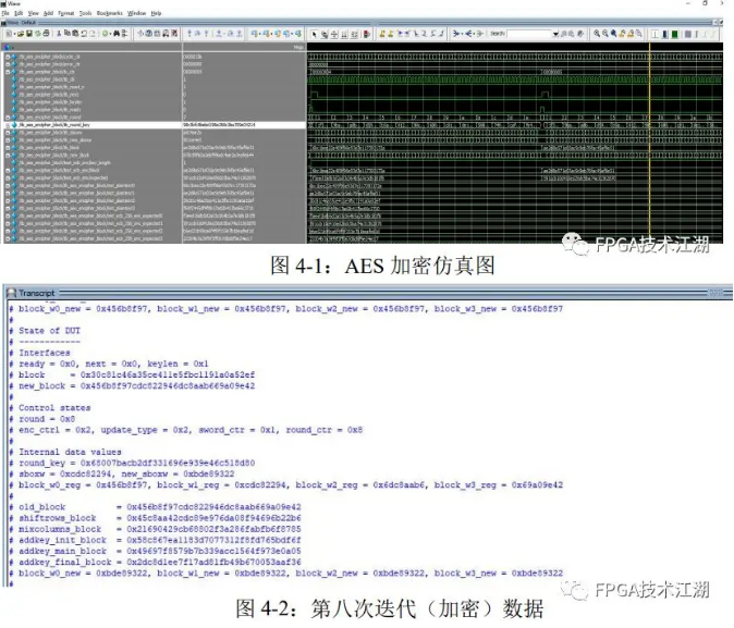 加密过程的 modelsim 仿真图 4-1 所示:该部分画面放大后可观察到有以下重 要数据: