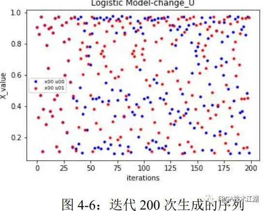 通过前文的分析,我们选择了 logistic 模型。在 jupyter notebook IDE 上用 python 调用 matlab 库设计了 logistic 模型,迭代 200 次生成的序列如图 4-6。