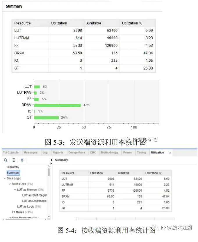 同时我们通过算法在硬件上的优化,可以占用很少的资源到达所需要求,如 图 5-3 和图 5-4 所示,可以看出很低的资源利用率。
