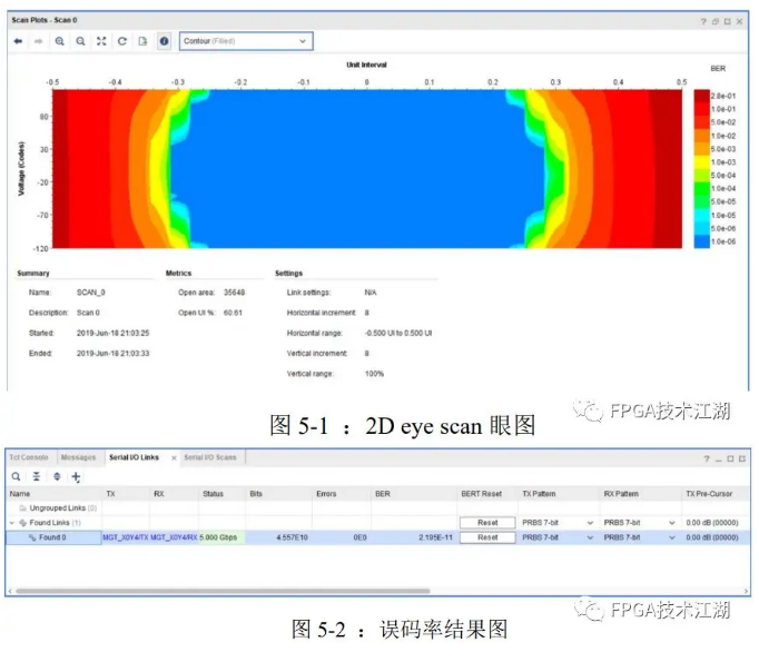 对于 GTP 高速接口,我们对其做时序约束是非常有必要的。除此之外,还要 要用专业的软件对光口进行测速,并对其信号质量进行分析和评估。