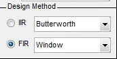 在图中第一个红色框内,我们根据自己需要选择低通或者高通,第二个框,在fir的设计方法中,我们也是可以根据自己需要进行选择,在此,比如我选择窗函数。