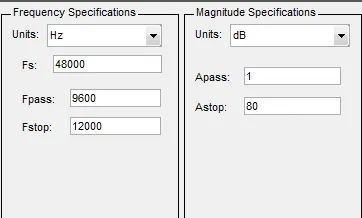 接下来是频率设置,units是频率单位,根据自己波形的频率进行设置合适的单位。Fs为采样频率,在满足奈奎斯特采样定律的情况下设置合适的频率。Fpass为通带频率,指的是滤波器允许通过的频率范围。Fstop为截止频率,指的是滤波器需要抑制的频率范围。