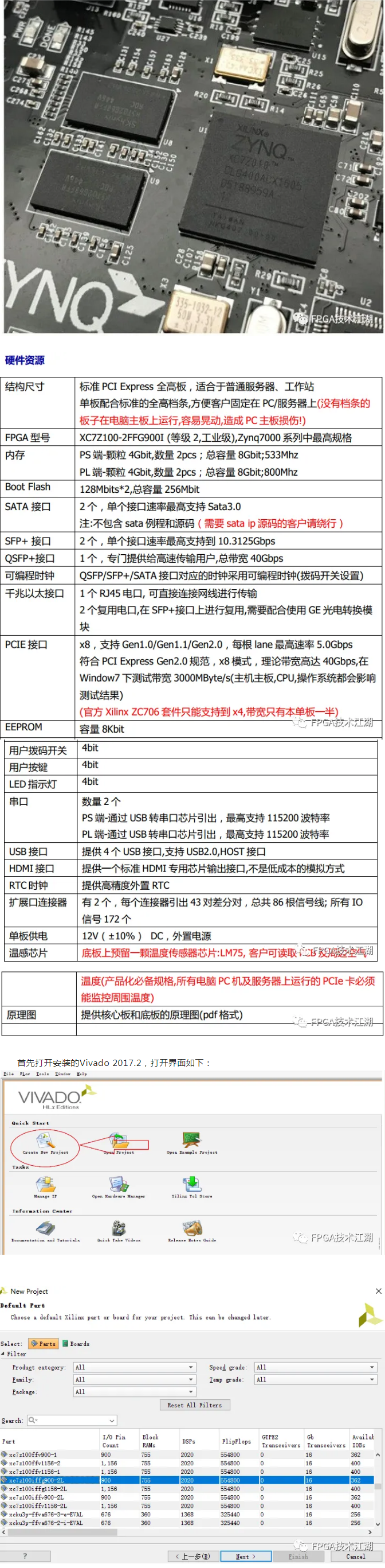 Vivado的安装教程公众号前篇推送过,各位大侠如有需要可以翻一下,这里放个超链接,Xilinx Vivado 2017.2安装教程,说了这么多,下面介绍一下开发硬件环境Zynq 7000 XC7Z100,Zynq 7000系列中顶配型号,Zynq + Kintex7最强组合,提供丰富的芯片内部资源。