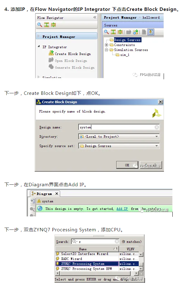 下面做一个从uart打印hello world的实验,只用PS,不用PL部分,程序从SD卡启动,跑在PS的内部RAM。