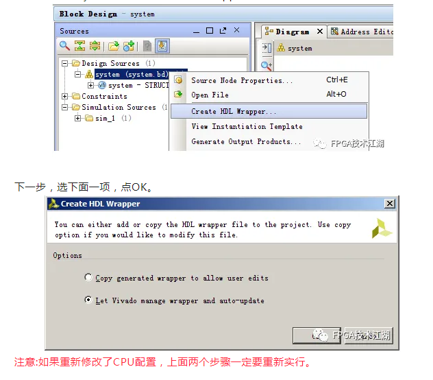 在Diagram界面点击Run Block Automation,不做修改,点Finish就可以。在Diagram界面双击。