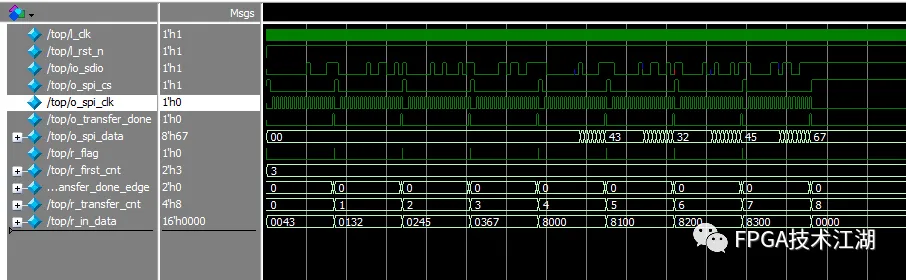 注意:指令最高bit表示读写,低写高读,其余bit表示地址。指令接着为数据端,两者位宽之和即为SPI单帧长。