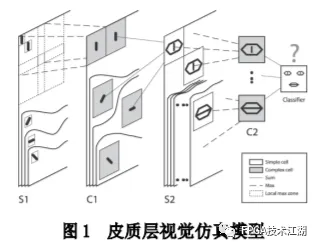 如图 1 所示,该网络由 5 层尖峰神经元组成。前 4 个是交替的简单和复杂的单元层(S1, C1,S2,C2),第 5 个是分类器(例如 SVM)。使用 Spike-Timing-Dependent Plasticity (STDP)在 C1-S2 层之间进行对象特征的学习。该网络架构属于麻省理工学院 Riesenhuber &Poggio 提出的 HMAX 模型中的一种,HMAX 模型是从哺乳动物脑部视觉处理的生理性提 取出来。
