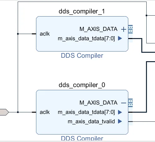 在Vivado中新建工程,创建Block Design,用DDS IP核生成两个正弦波信号,如图11所示。
