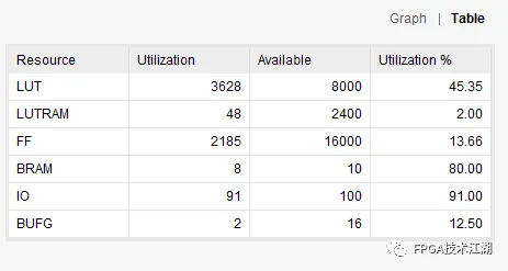图29和图30可看到,综合布线完成后共占用逻辑单元3628个,一共使用总逻辑单元数量的45.35%。片内RAM共使用8KB,占用总片内RAM资源的80%。在总的资源占用上较为良好的达到了对轻量的需求。