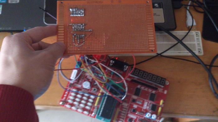 早上六点起来,按照惯例我是要去自习的,可是板子的事情没做完就打开电脑用面包板做,原本以为很简单的电路在面包板上也花了近一个小时的时间。验证完原理图,翘了一二节课,这两节课是介绍性的课程,老师也只是介绍一些知识让我们有些了解,所以翘了也没事。洞洞板排版,焊接,连线,一共花了一个半小时的时间,因为在验证时(面包板)已经把原件线做好了,所以会显得比较快。