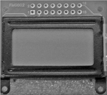 本文以YM-0802B系列字符式LCD模块为例,叙述LCD显示在智能车系统中的应用。YM-0802B实物如下图所示,是2×8字符式LCD模块(可显示2行,每行8个字符)。