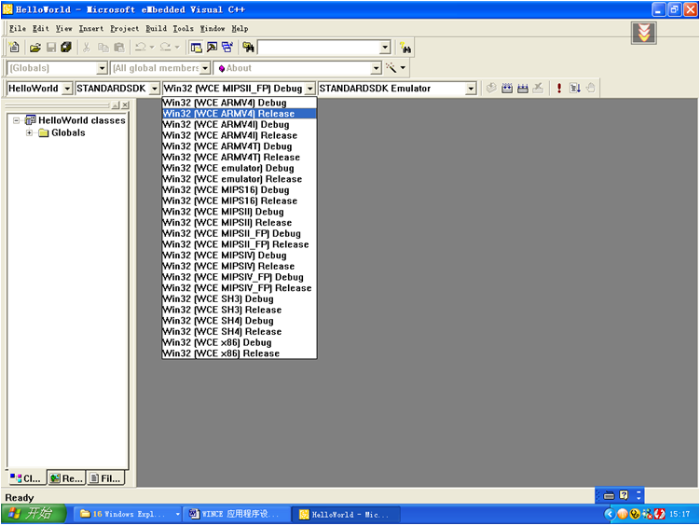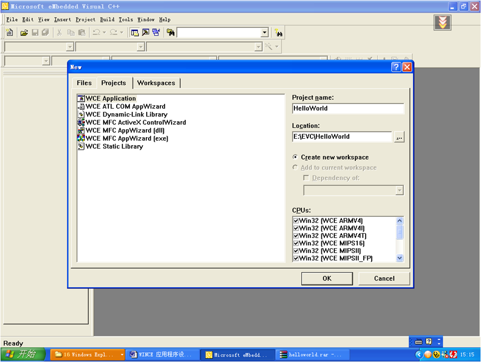 如果安装正确,如图所示执行开始菜单下的eMbedded Visual C++ 4.0