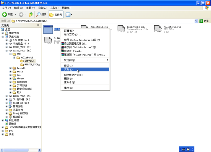 4、如果连接正确,将上节生成的HelloWorld.exe文件拷贝到“移动设备”下的“My Documents”目录。如下面两图所示。