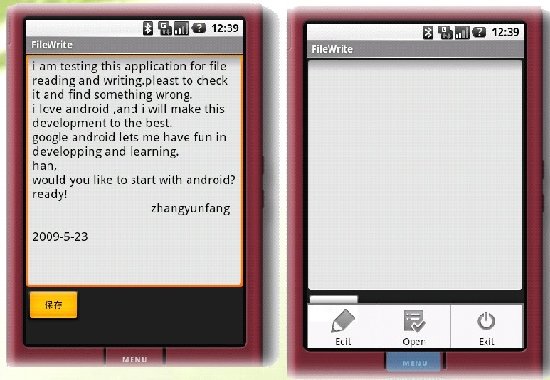 创建添加文件内容并保存,打开文件并显示内容