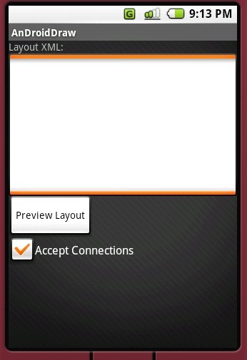 AnDroidDraw 是一个与DroidDraw 集成的Android 应用程序,它允许你从DroidDraw 应用程序下载你的GUIs,也允许你在一个Android 设备上预览你的GUIs.