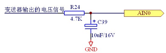 采样温度范围是0~100℃,变送器将温度信号转换为0~3.3V的电压信号。电压信号和S3C2410的AIN0相连。系统通过测量电压信号从而得到当前的温度值。电路如下图所示: