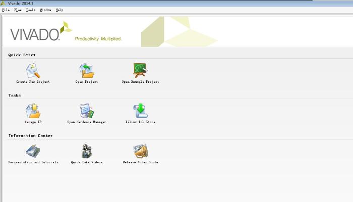 您可以启动Vivado设计套件和运行该工具使用不同的方法 根据您的偏好。例如,您可以选择一个Tcl脚本的编风格的方法,你自己管理来源和设计过程中,也被称为Non-Project模式。或者,您可以使用一个基于项目的方法来自动管理你的设计过程和设计数据使用项目和项目状态,也称为项目 模式。这两种方法可以使用Tcl脚本批处理模式运行或运行交互式地Vivado IDE。在不同的设计流程模式的更多信息,我是参考了Vivado设计套件用户指南:设计流程概述,启动以后的界面如下图: