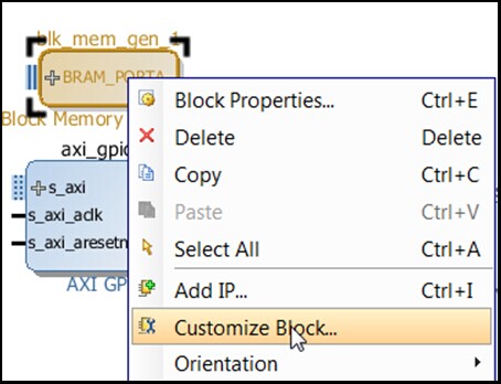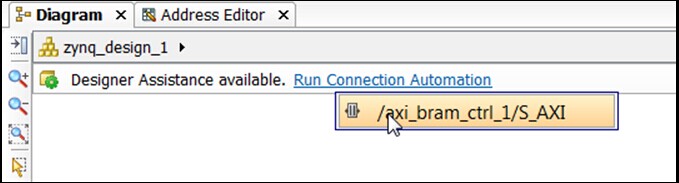 5、选择Run Connection Automation,并且选择保留的属性/axi_bram_ctrl_1/S_AXI
