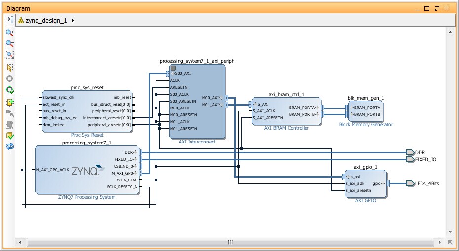 其中由AXI BRAM 控制器提供一个AXI的存储器图接口道块存储器发送器。