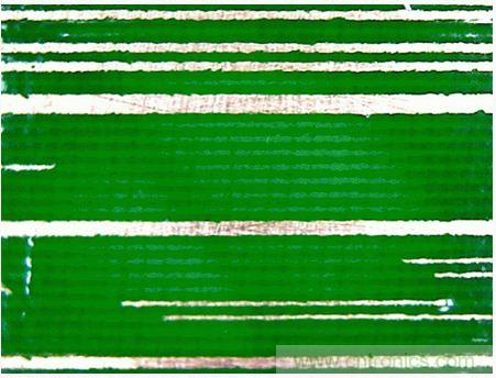 图11:这是碳粉转印后的图像(5mil线-显微镜图像)。