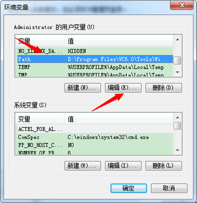4、选择Path并且选择编辑,并且添加下面这两句: