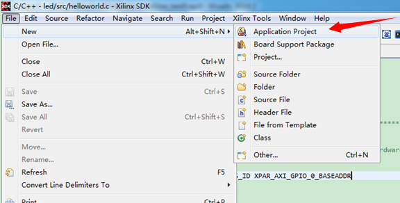 下一个插曲,sdk打开之后,我们直接新建一个Hellow World 工程,并且用cuter的代码去替换,即可: