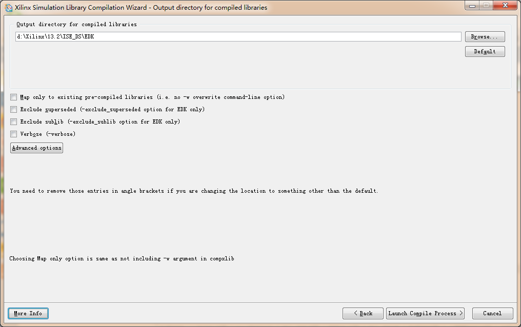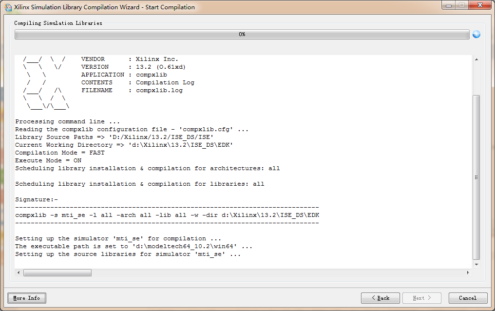 0赞所用软件:ISE 13.2 + Modelsim SE-64 10.2 所用语言:verilog HDL 首先安装ISE和modelsim软件。在你安装的xilinx 软件的安装目录下面,找到EDK 这个文件夹,打开EDK文件夹,里面有一个modelsim.ini文件,点击属性取消只读。然后打开 程序-》xilinx ISE Design suite 13.2 -》EDK-》tools-》compile simulation libraries |
