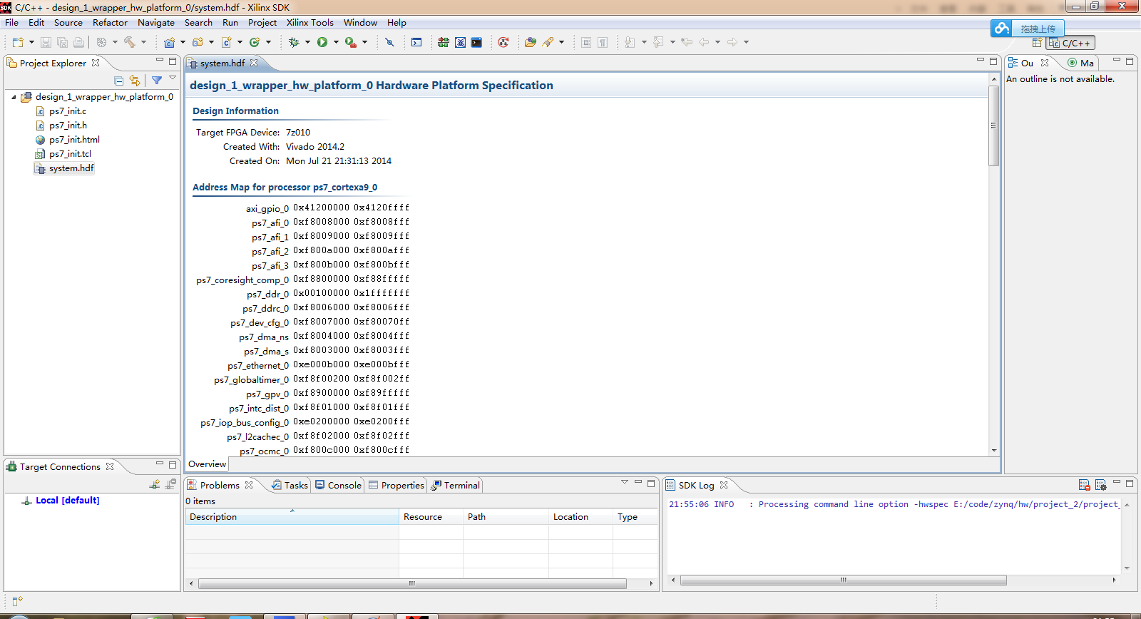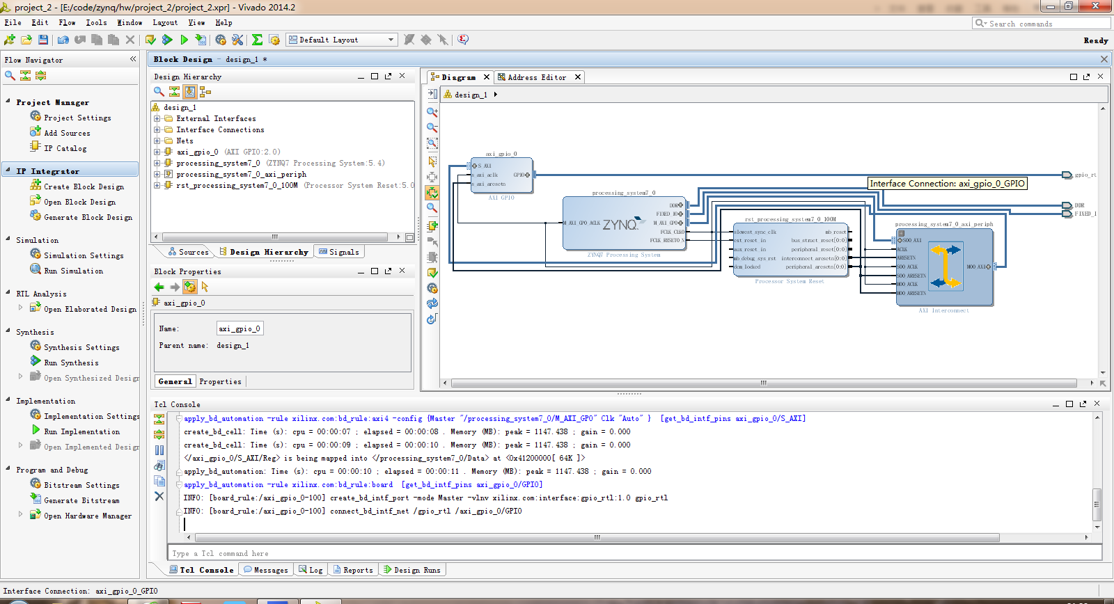 先使用vivado 2014.2 进行硬件设计, 使用IP核设计硬件。方法如下: