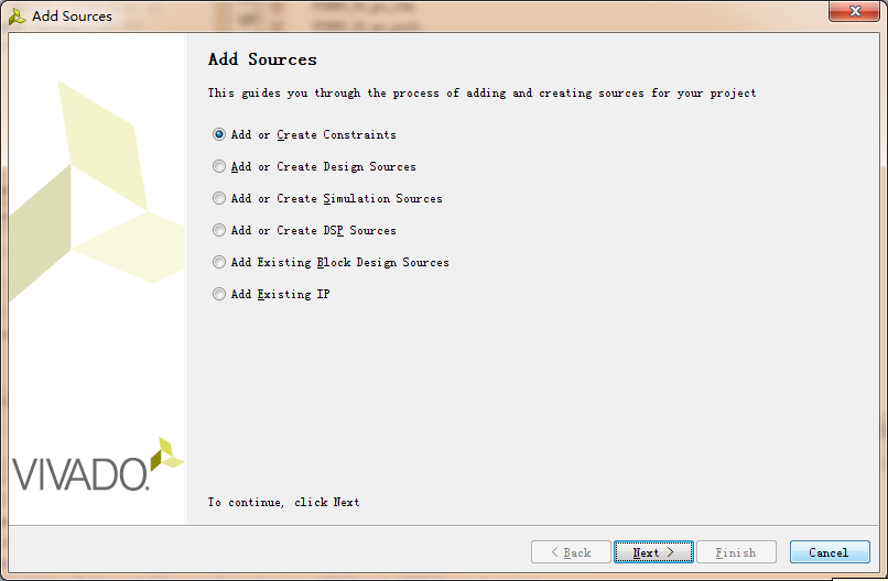 1. 点击vivado2014.2 快捷键,新建工程,选择xz7c010clg400-1芯片。参考上篇博客,里面有新建工程的例子。