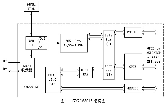 CY7C68013结构图如图1所示。它有三种封装形式: