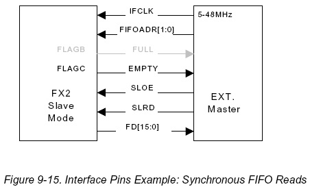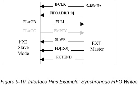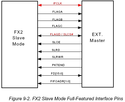 在Slave FIFO方式下,外部逻辑与FX2的连接信号图如下: