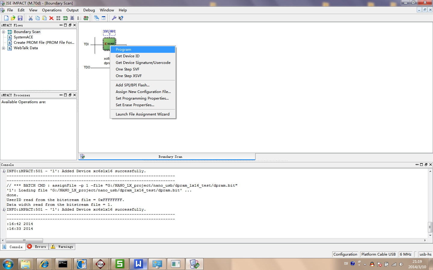 2、打开xilinx下载工具,也可以可以从ISE Project navigator 下集成打开