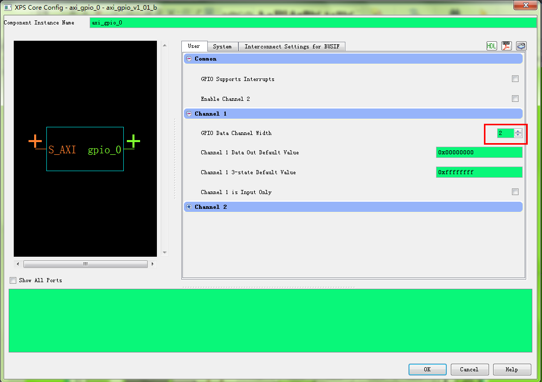 3、 将channel1 的位宽设置为2;其它默认;单击OK;