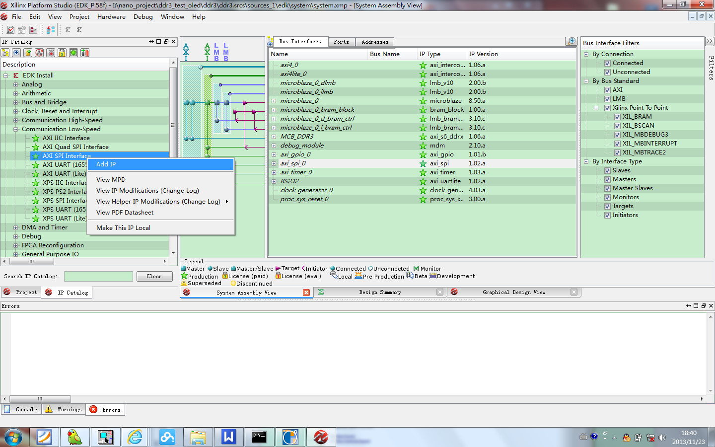 在AXI系统总线下,搭建软核的关键部分步骤如下;