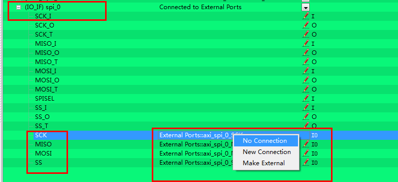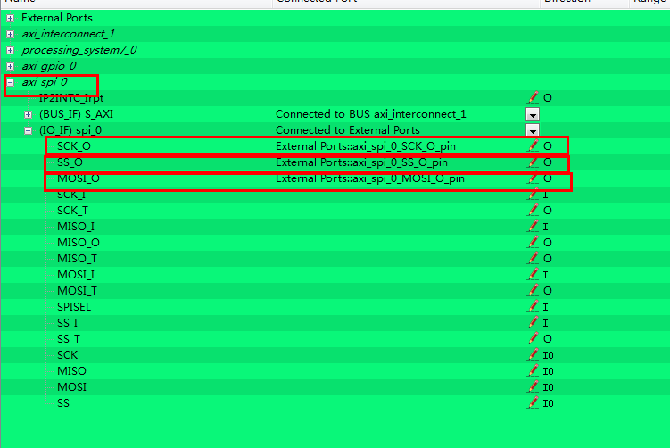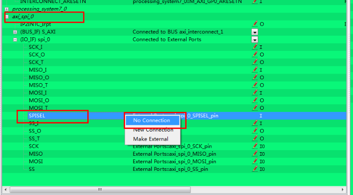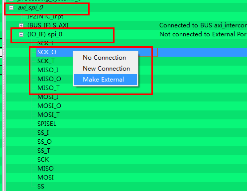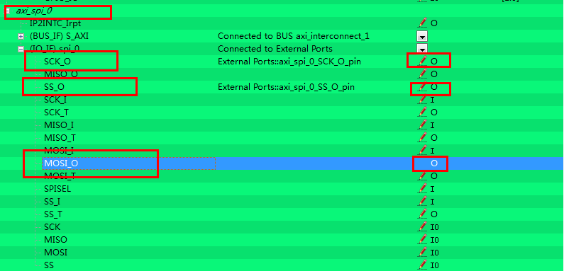 5,对SPI所需要的SCLK,SS,MOSI信号进行连线,扩展到外部接口。