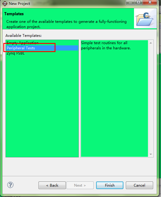 11、选择Peripheral Tests;点击Finish;编译完成。