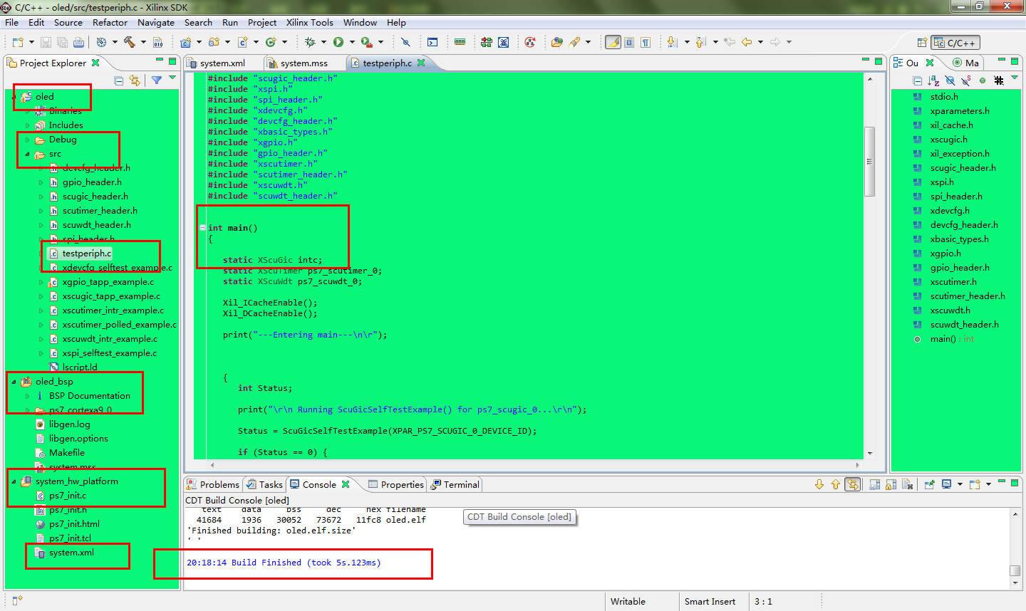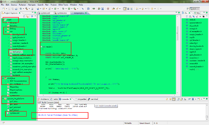 12,需要修改代码,并添加字库;将font.h文件和main.c文件直接拷入x:\oled_sk\oled\soft\oled\src工程目录源文件下;删除testperiph.c,project->built all;
