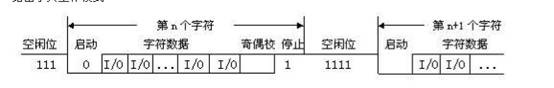 在空闲状态,即没有数据传输时,线上电平保持为高电平。当开始有数据传输时,线上电平会拉低,表示开始传输数据。第一个数据位开始位,然后是数据位,数据位可以是8位,也可以使8位到4位,但是顺序是低位在前,高位在后。最后是一个高电平的停止位。这样就完成了一次数据传输。