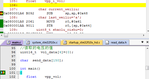 然后我们在去看看这个0x080001A6地址指令,就是main函数地址。所以就跳转到main函数去了。