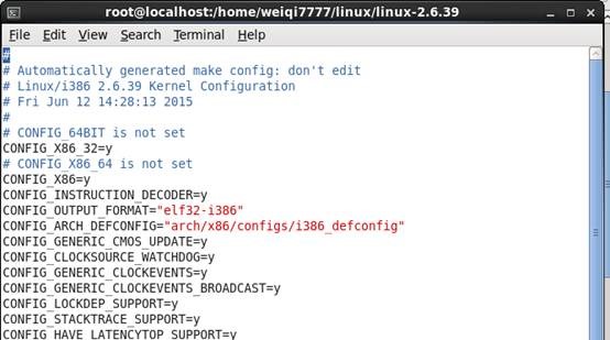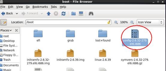 在装好的linux系统中,在boot目录下,有一个config的文件。这个文件就是现在运行的linux系统的内核的配置文件。可以看出,这个时候运行的linux系统的内核是2.6.32。