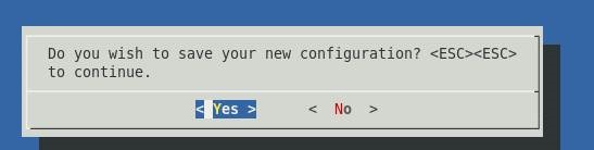 选择OK后回到上一层界面,在退出,会有对话框提示是否保存新的配置文件,选择Yes。