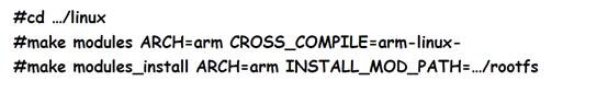 在OK6410的编译linux目录里,编译内核模块,将内核模块安装到我们设置的根目录下。注意,该目录只要设置根目录,软件会自动的找到目录下的lib/modules目录,将内核模块放进去。
