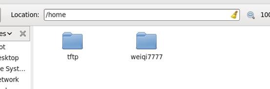 首先是在电脑上,建立tftp目录。我这里是在home目录下,建立了tftp目录,以后要通过tftp下载的程序要放在这个目录下。