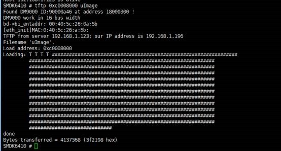 这样,程序就下载到开发板的0xc0008000地方了。用tftp下载的效率要比dnw和串口下载的方式要快很多。