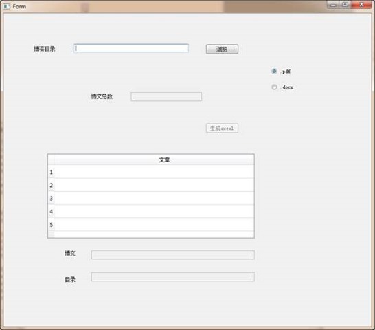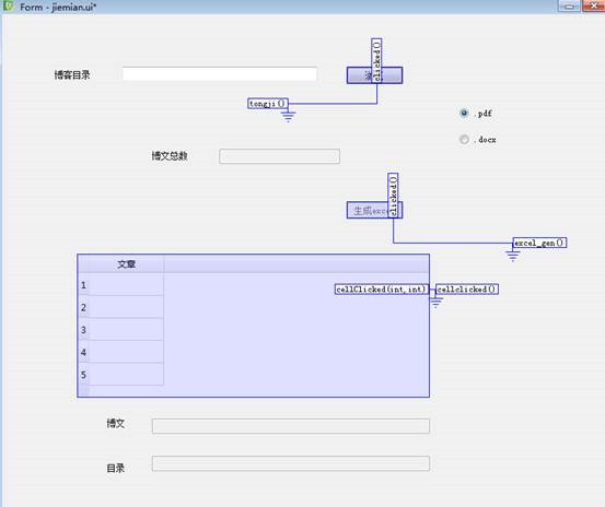 首先,先用designer设计界面,并连接信号与槽。文章只有pdf和word格式,所有只有两个选项。红色框,就是上一篇博客写的tableWidget控件。