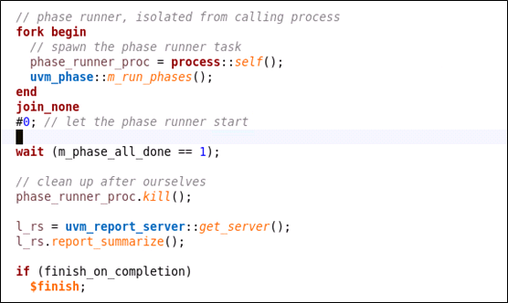 通过process类,保存进程号,启动uvm phase。此处用fork join_none,父进程就不必等子进程结束,就可以退出。