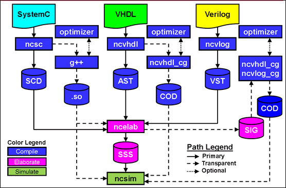 nc,指native compile,将不同的HDL code转化成一种中间语言(native language),然后统一仿真,为了实现混合语言仿真。