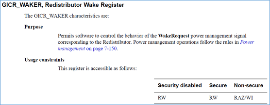 gic中,提供了如下的 GICR_WAKER 寄存器,来支持power功能。