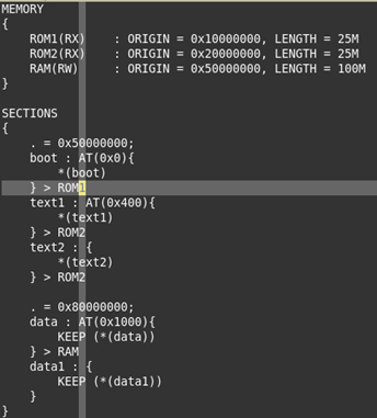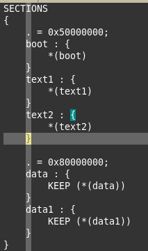 在链接脚本中,分别定义代码段和数据的起始地址