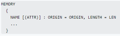 在链接脚本中,可以使用MEMORY关键字,定义memory空间,格式如下图: